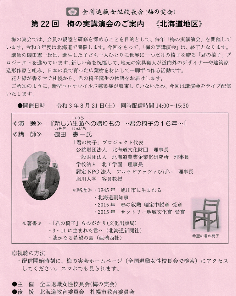 「新しい生命いのちへの贈り物」 ~君の椅子の16年~ |