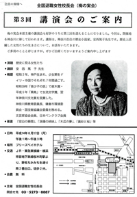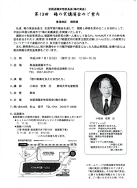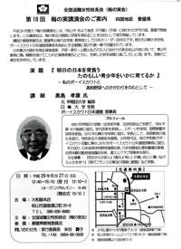 毎回アンケートには、開催県の梅の実会実行委員会に対して、感想と共に多くのお礼や感謝の言葉が寄せられています。梅の実会の心の絆を強く感じる「梅の実講演会」です。記念すべき第20回は、岡山県で開催されました。 |
